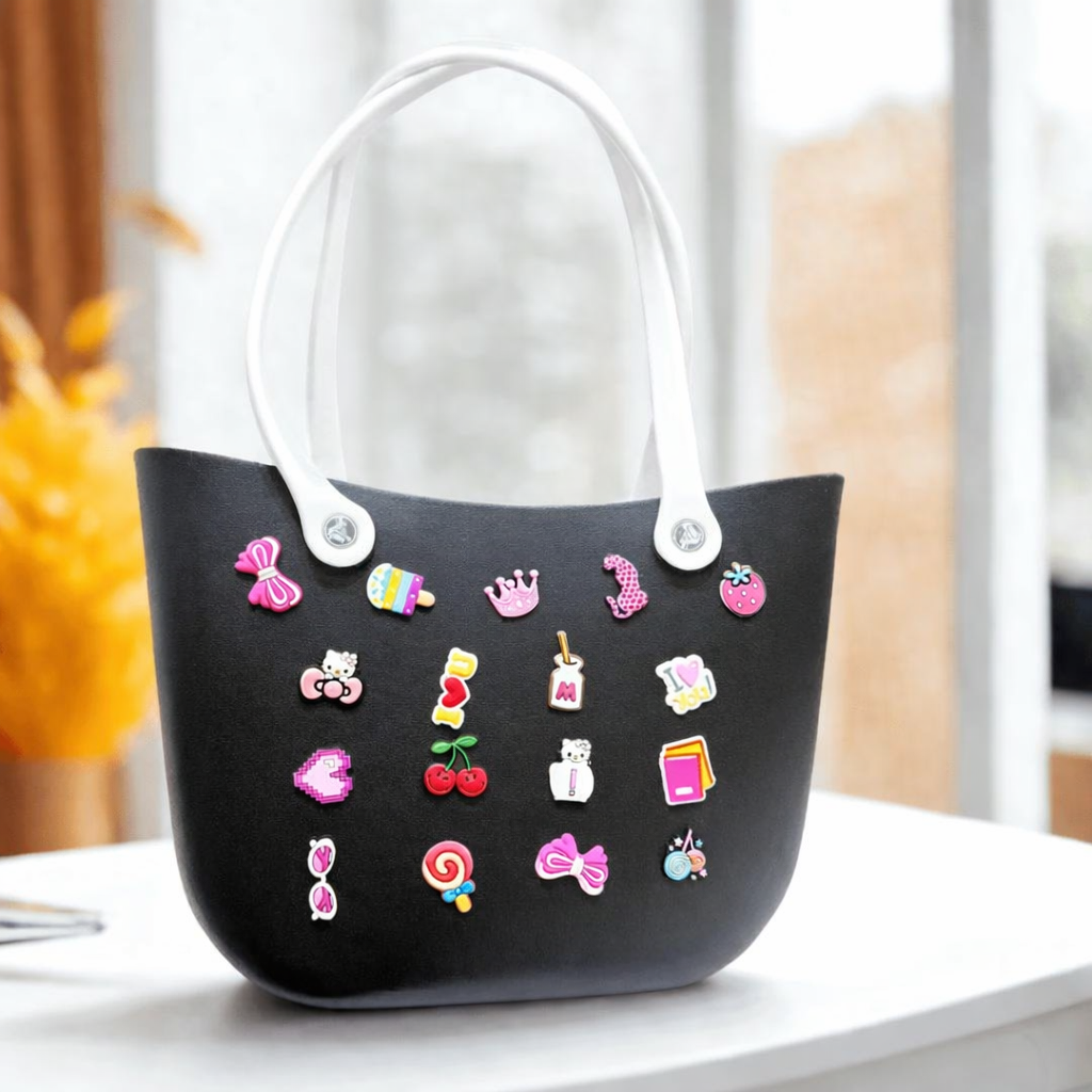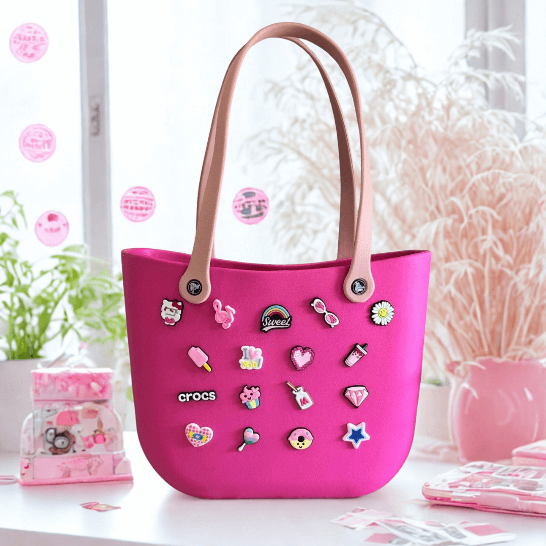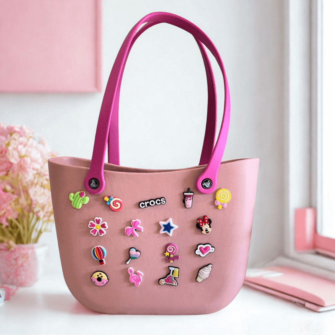 Perfect Everyday Tote for Stylish, Fun-Loving Women. This trendy Crocs-style tote handbag is designed for girls and women who love comfort, colour, and customisation. Lightweight, durable, and waterproof — it’s the perfect companion for college, travel, shopping, and daily use.